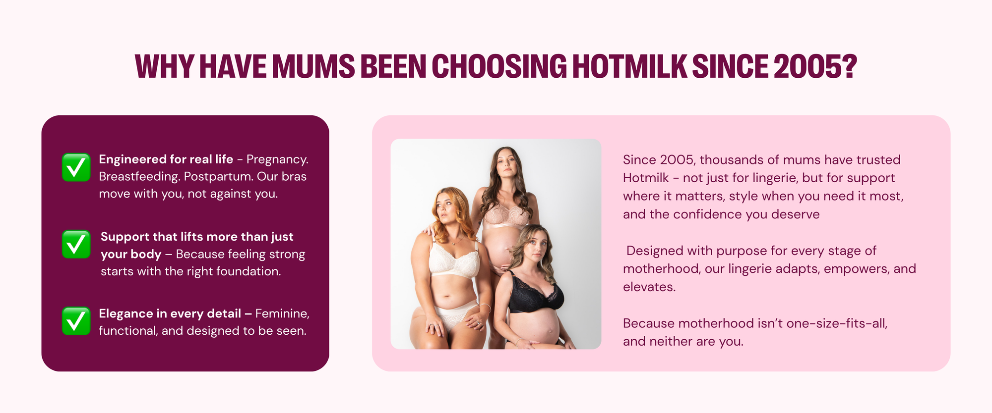 As a team of moms, we understand the importance of protecting the planet for future generations. We are committed to reducing our impact on the earth by creating beautiful products that are healthier for you, your family, and our environment. All Hotmilk garments are ethically sourced and go through rigorous testing to ensure the fabrics and hardware are safe and free from harmful chemicals.